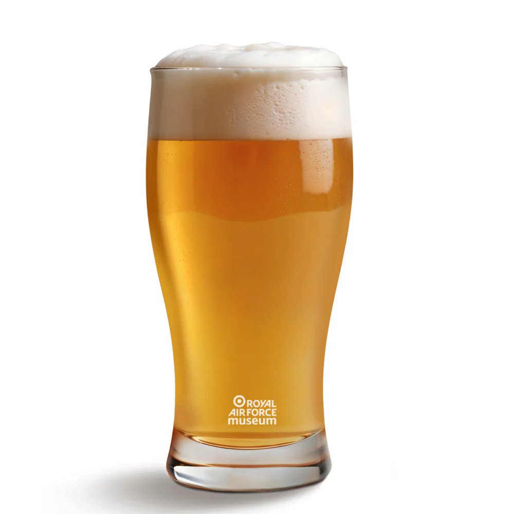 This 568ml pint glass features the Spitfire Chocks Away design on both sides, with the museum logo discreetly placed on the side of the glass. It’s the perfect companion to Chocks Away Beer.