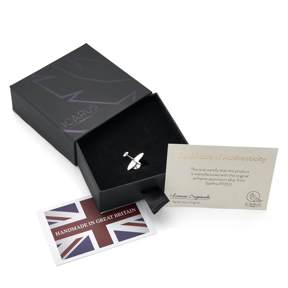 Wear a piece of aviation history with the Spitfire P7350 Lapel Pin. Crafted from reclaimed Spitfire P7350 aluminium alloyed with sterling silver, this meticulously designed pin captures the essence of one of the most iconic planes of World War II. Whether you’re an aviation enthusiast or simply searching for a unique gift, this pin will elevate your style and pay homage to the brave pilots who flew these legendary aircraft.